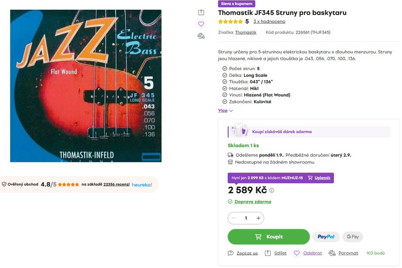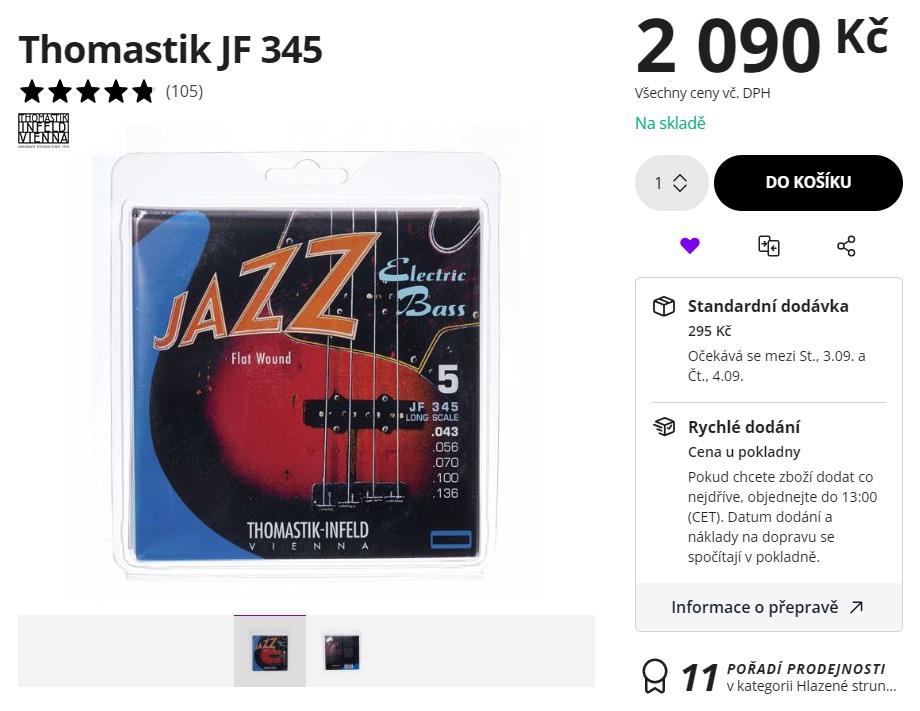 Navíc já nedávno koukal na Thomanna, a teda nevím, jestli v poslední době nějak výrazně šly tyhle struny nahoru, ale myslím že 5 strunnou verzi tam měli do 2t.